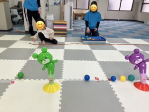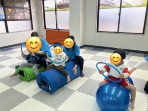 他にもサーキットあそびやコロコロボール、バスごっこなど楽しく盛り上がりながら体幹や運動機能の向上を図ります。職員も子どもたちと一緒に楽しく取り組んでいます♪