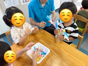 ストロー通しは、ストローを掴む、ひもを通す時の力加減も必要になります。