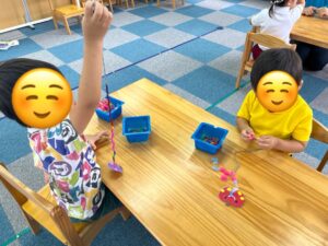 子ども同士の言葉のやりとりや関わりが見られる遊びの一つです。