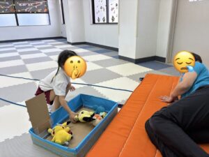 静かな活動では絵本の読み聞かせを聞いたり、SSTカードや絵カードを使ってルールについて考えたり、様々な事柄や物について一緒に考えたり、お話しをしていきます。