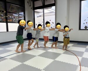 最後は、カーブになったロープから落ちないようにお友達6人で電
