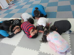 次に、地震・火災の避難訓練を行いました。