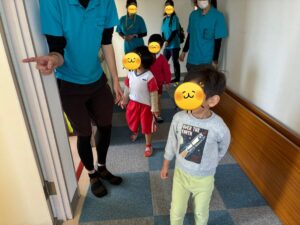 地震がきた後に、2階の放課後等デイサービスから火災が発生したという想定で行いました。