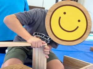 子どもたちは釘打ちとやすりがけをしました🪵
